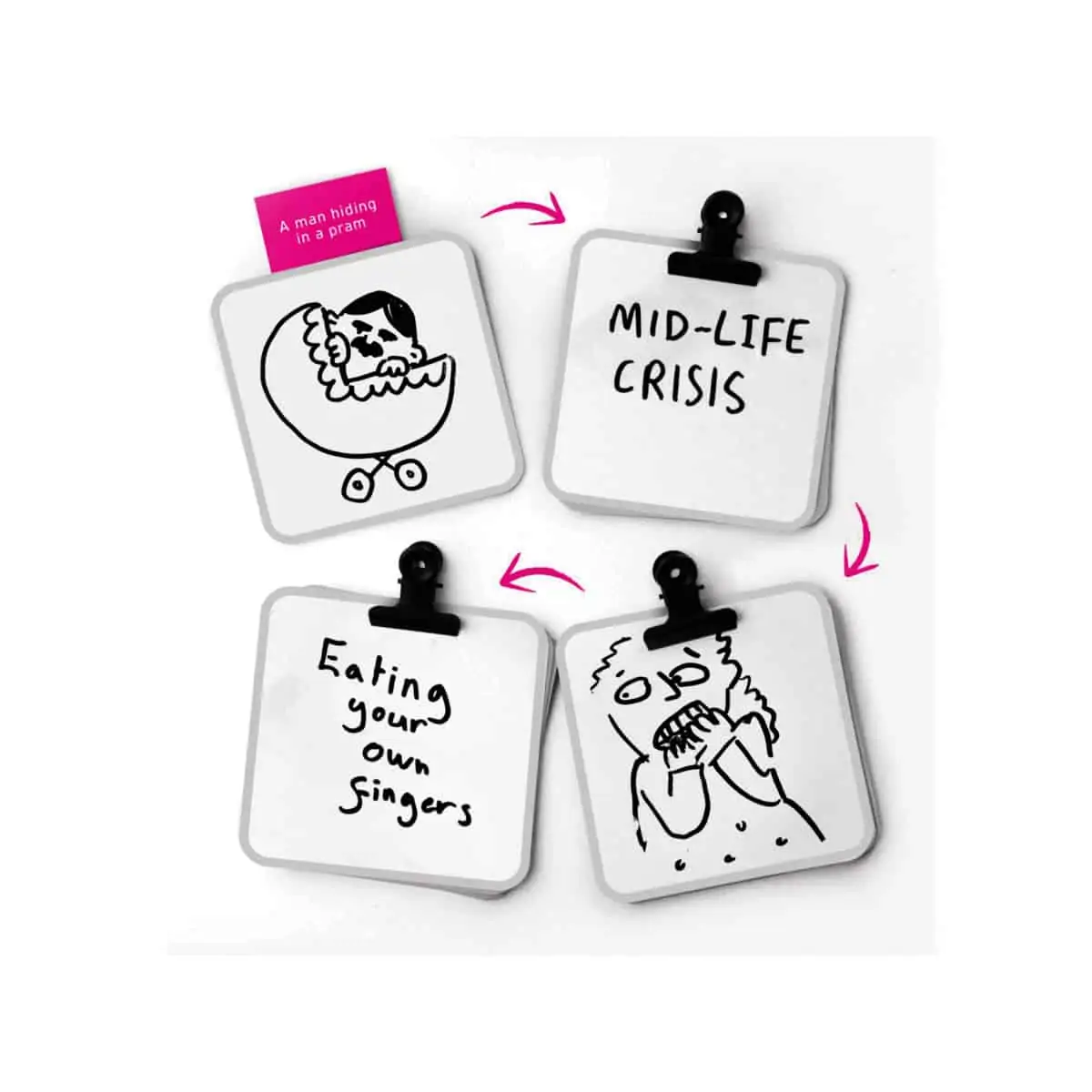 Revelando al terrible artista que todos llevamos dentro, los jugadores de Scrawl comienzan con una frase cargada, la dibujan y luego la transmiten. Para cuando su obra maestra de una "Línea de conga OAP" pase por las mentes extrañas y los bolígrafos torcidos de sus amigos, y lo devuelva a usted, las cosas habrán ido terriblemente mal. Se otorgan puntos por los garabatos más desastrosos y las conjeturas más terribles. La mayoría de las sonrisas gana.