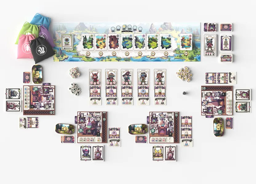 En el transcurso de 6 rondas, los jugadores compiten por la mayor reputación al alcanzar estratégicamente objetivos, sanar aventureros y lanzar hechizos poderosos. Hay 3 fases por ronda; Foraging, Alchemy y Healing.