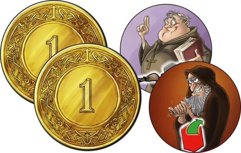 En tu turno, o bien dibujas 2 fichas en tu soporte de fichas ('mano'), o construyes una ficha en tu castillo, ya sea desde tu mano o desde el mercado compartido. Dependiendo de qué pieza construyas y dónde, tu barón puede mover un cierto número de pasos. ¡Si aterrizas en un oponente, lo pasarás gratis! Si obtienes un bono, lo recibes, y si recibes o pasas un bono de monedas, tomas una moneda del mercado de monedas. Cada moneda tiene un efecto inmediato de 1 vez, y el primero en llegar a 7 monedas gana el juego. Un ejemplo de un efecto moneda puede ser: 'El jugador con más ventanas en el castillo dibuja 2 fichas'. Esto aumenta la competencia y la importancia del tiempo.