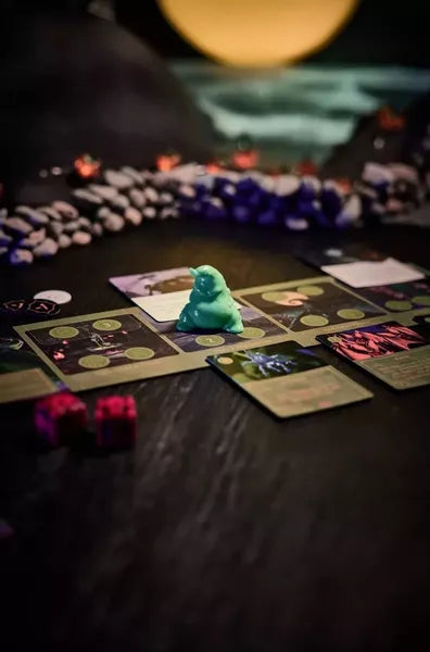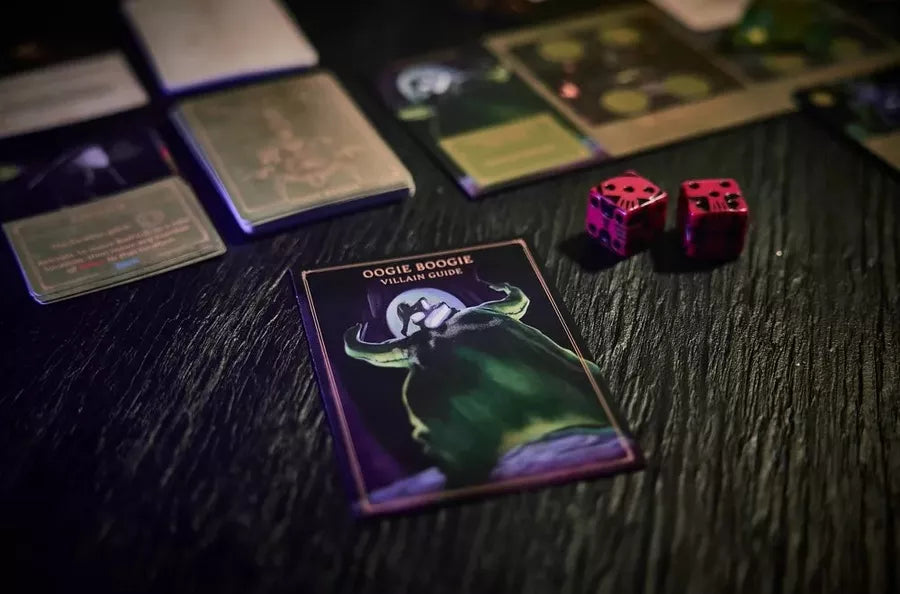 En Disney Villainous: Filled with Fright, un jugador asume el papel de Oogie Boogie de The Nightmare Before Christmas de Tim Burton e intenta destronar a Jack Skellington, el rey de las calabazas.