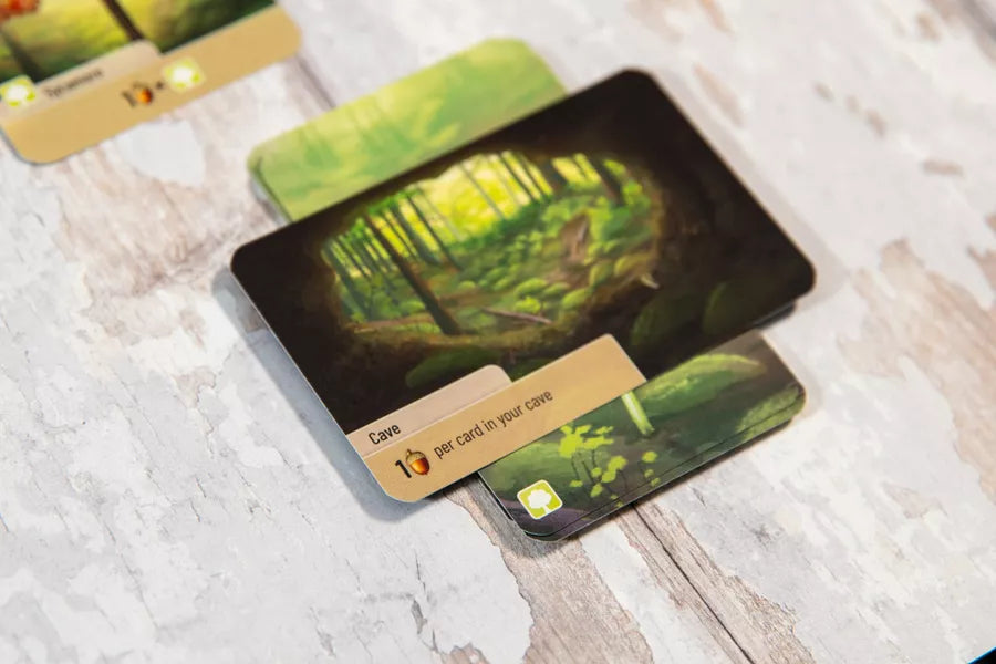 Para empezar, cada jugador tiene seis cartas en la mano, con cartas que representan un tipo particular de árbol o dos habitantes del bosque (animal, planta, hongo, etc.), dividiéndose estas últimas cartas por la mitad, ya sea vertical u horizontalmente, con un habitante en cada mitad.