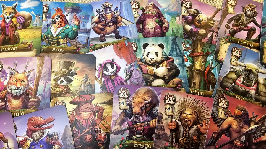 En Lost Lights, dos jugadores luchan con su grupo de diversos personajes animalescos por el control sobre las regiones de Amanaar. Al principio cada jugador dibuja 10 de las 27 cartas bellamente e individualmente ilustradas. En tu turno, juegas una carta de tu mano y realizas un número de acciones igual al valor del punto de acción de la carta.