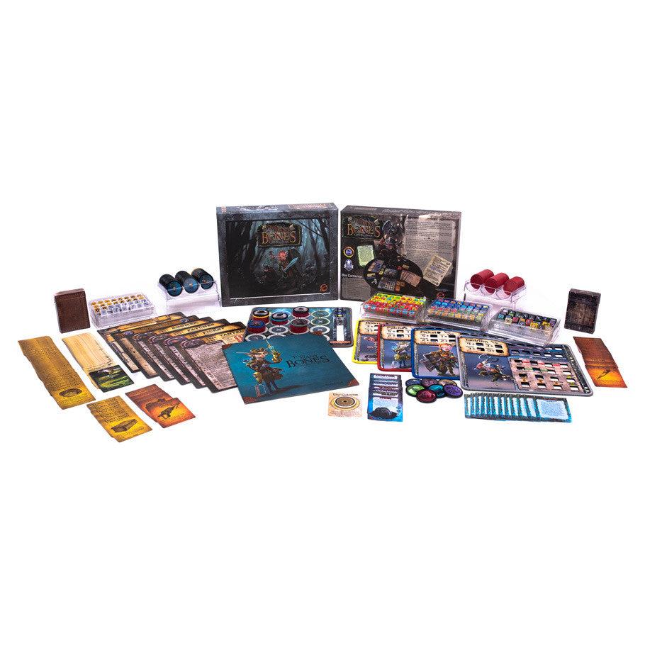 Bienvenido a Too Many Bones, el aclamado RPG de construcción de dados para 1-4 jugadores. Reúne a tu grupo de Gearlocs y viaja para enfrentarte a los feroces tiranos de Corazón de ébano. Nuevos encuentros te pondrán a prueba cada día, con muchos jugando en el Battle Mat-una cuadrícula 4x4 donde Gearlocs y Baddies se moverán, atacarán y defenderán en cuartos estrechos hasta que un lado salga victorioso. Los encuentros ofrecen oportunidades para obtener botín, ganar puntos de entrenamiento y poner a prueba tus nuevas habilidades. Cuando hayas ganado suficientes puntos de progreso, puedes desafiar al tirano y ver si tus Gearlocs están equipados para luchar contra esta última amenaza. Los Venna son una facción de expansión para Wroth que se centra en wresurrection y wretaliation para superar a sus oponentes. Esta expansión de contenido cuenta con desafíos individuales y cooperativos únicos para que los jugadores disfruten. A lo largo de la aventura, los jugadores decidirán cómo equipar mejor su Gearloc. Mejora las estadísticas, entrena nuevas habilidades, avanza en nuevas profesiones y recoge preciados botines. Y no te olvides de aprender de los errores del pasado. Cada fallo es una oportunidad para agregar huesos a tu plan de respaldo, lo que permite poderosas habilidades para cambiar el curso de la batalla en favor de los Gearloc.